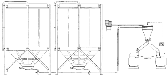 tubazione di carico ed estrattore vibrante in acciaio