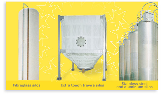 Euro Fim’s trevira, fibreglass, aluminium alloy and Aisi 304 stainless steel storage silos guarantee preservation of the quality of raw materials. Dimensions and capacity are determined on the basis of consumption figures and available space. |