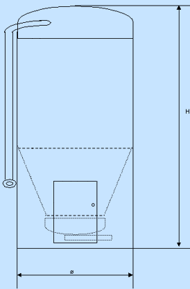 The EUROFIM range of aluminium and/or AISI 304 stainless steel outdoor silos permits satisfaction of all storage needs, from the biggest to the smallest, with systems custom-tailored to meet specific needs. The productive process based on a "vertical axis" guarantees a top quality final product. Complete with skirt, loading pipe and bleed pipe, oval-shaped manhole with flange, hinged door with lock, safety valve. |